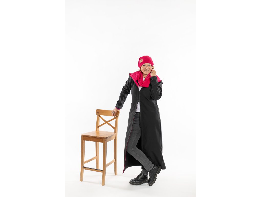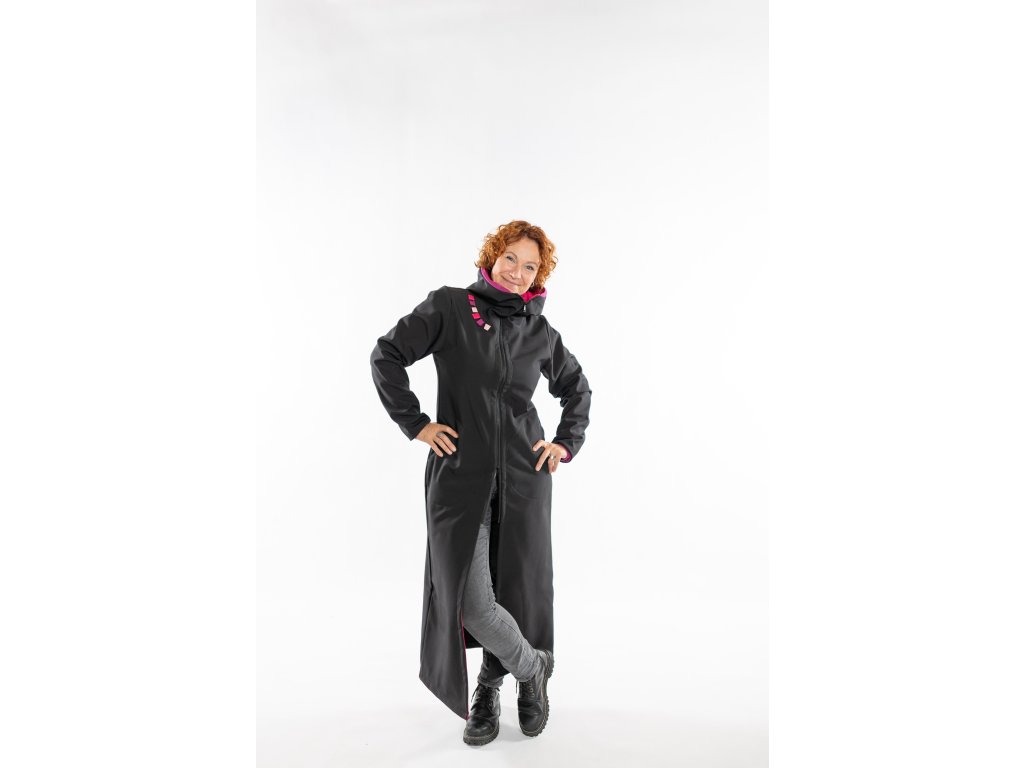 Kapucka je dvojitá, do boku jsou všity kapsy. Bunda je projmutá přes boky volná, poté v délce stažena.Pokud máte zájem o límec místo kapucky, napište tuto změnu do objednávky.