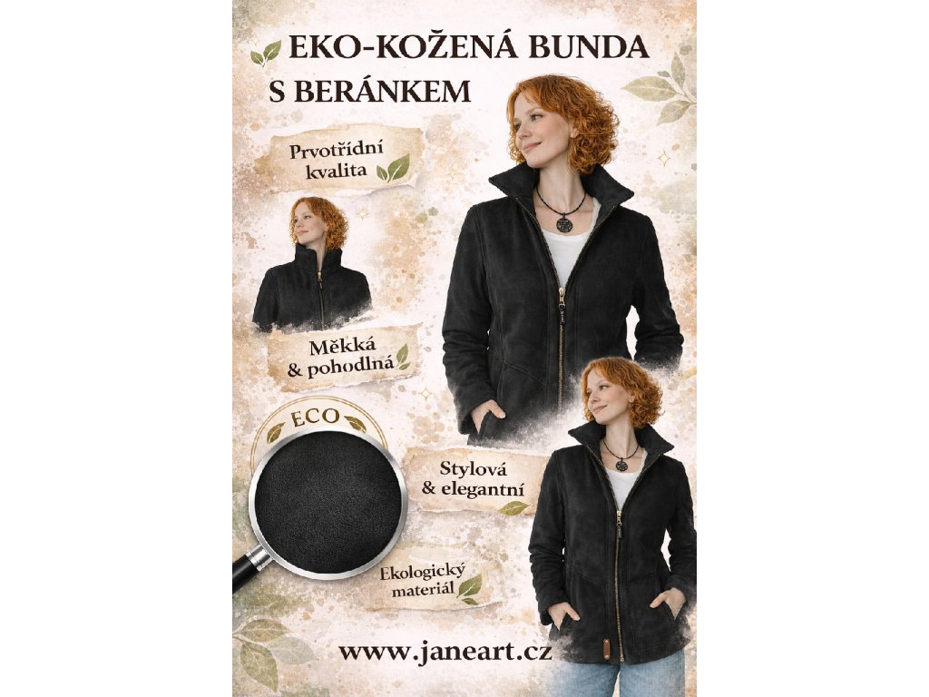 Bunda s broušené EKO kůže s beránkem