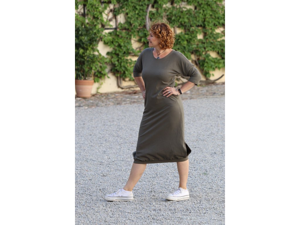 Šaty jsou ušity z úpletu o gramáži 300g/m2 o složení 97% bavlna +3%elastanu.
