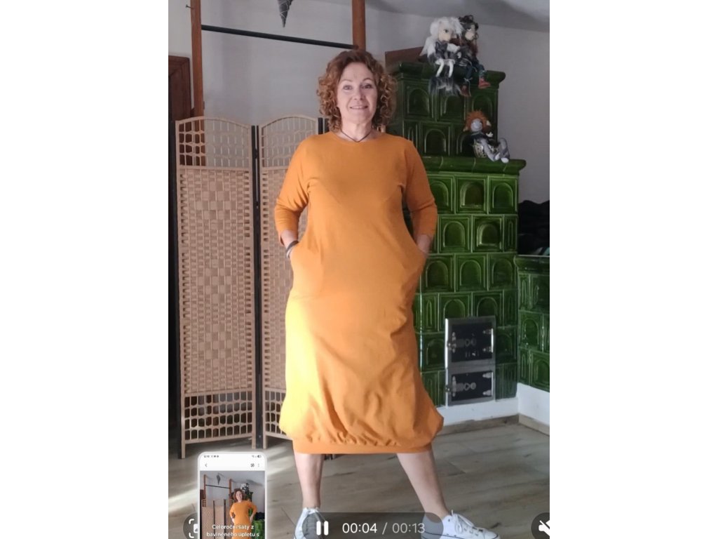 Šaty jsou ušity z úpletu o gramáži 300g/m2 o složení 97% bavlna +3%elastanu.