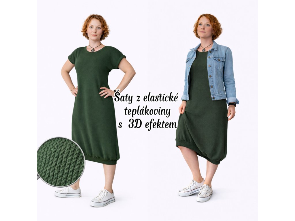 Šaty jsou ušitý z elastické teplákoviny s 3D efektem