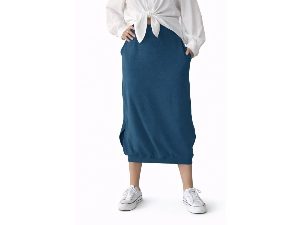 Sukně je ušitá z elastické teplákoviny s 3D efektem